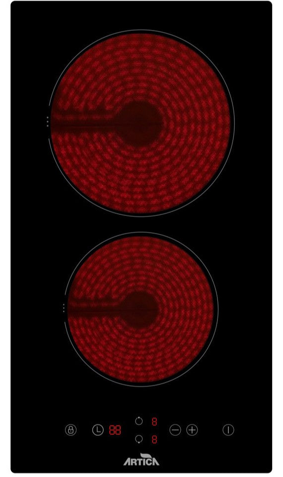 La Encimera vitrocerámica Artica AEV6022 2F combina tecnología, potencia y estilo moderno en un diseño compacto de solo 30 cm de ancho. Con dos zonas de cocción y 9 niveles de potencia, permite cocinar con precisión desde preparaciones rápidas hasta recetas delicadas, ideal para cocinas integradas y modernas.